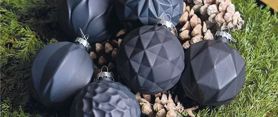 Früher wurden Weihnachtsbäume mit roten Äpfeln verziert, heute haben Weihnachtskugeln ihren Platz eingenommen. Sie sind dabei in Material, Form und Farbe so vielfältig, dass für jeden Geschmack etwas dabei ist. Schwarz-matt lackierte Weihnachtskugeln sorgen für eine Extraportion Eleganz im Weihnachtstrend „Cosy Moments“. In Kombination mit natürlichen Materialien wie Tannenzweigen oder Tannenzapfen bilden sie ein stilsicheres Arrangement.