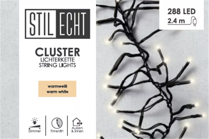 Die Cluster-Lichterkette lässt sich das ganze Jahr über verwenden. Ihren Einsatz findet sie auch bei Feierlichkeiten wie Geburtstage oder Hochzeiten.