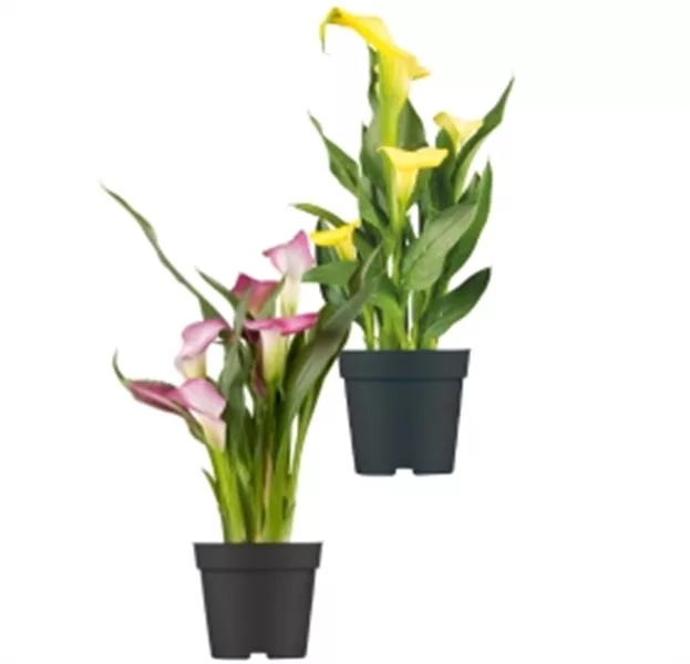Die Calla (Zantedeschia aethiopica) ist eine sehr elegante Pflanze. Vor allem in Weiß wirkt sie besonders vornehm. So bringt sie viel Klarheit in den Raum. Die Blütezeit der Zimmercalla beginnt bei uns im zeitigen Frühjahr. Das Farbspektrum des attraktiven Hochblatts unterscheidet sich je nach Züchtung. Von hellem Weiß und Creme über Gelb und Orange bis hin zu kräftigem Pink, Violett und Rot bis fast Schwarz ist alles dabei.